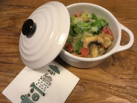 1. Meer groente. Probeer meer groente toe te voegen aan de stamppot. Een gebakken uitje, champignons of stukjes paprika zijn allemaal heerlijk om aan je stamppot toe te voegen.
